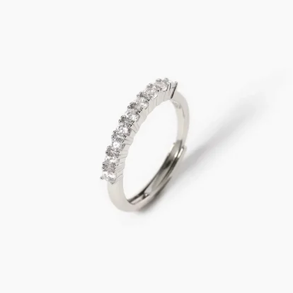 Anello da donna solitario regolabile in argento rodiato con zircone.